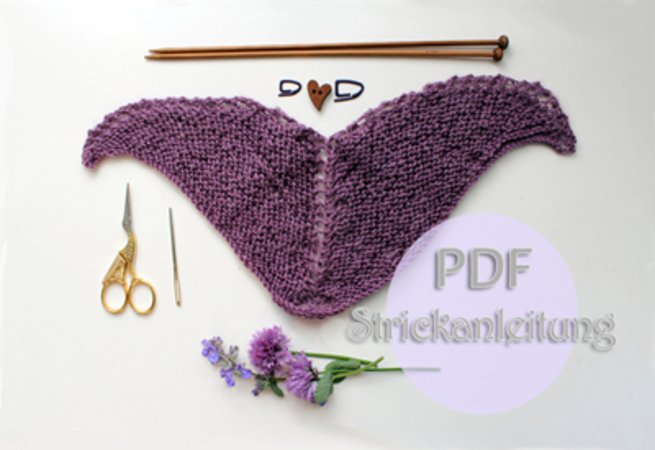 Begonnen wird der Shawl in der Mitte und kraus rechts gestrickt wird er durch die gestrickten Zunahmen/Umschläge in jeder Reihe immer breiter.