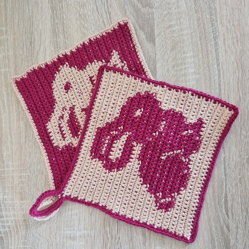 Diese Topflappen schützen nicht nur die Hände, sie eignen sich auch wunderbar als Untersetzer oder als Küchendekoration.