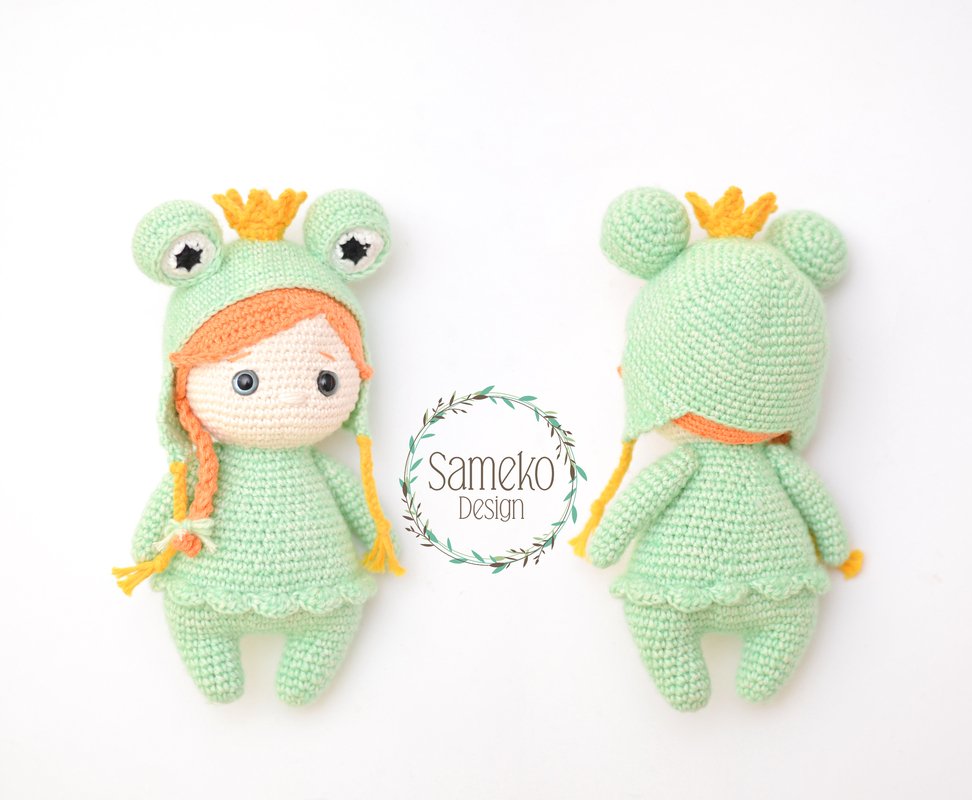 Sansa die Froschprinzessin ist am Ende ca. 18 cm Hoch bei Garn Stärke 3,0 / Häkelnadel 2,5