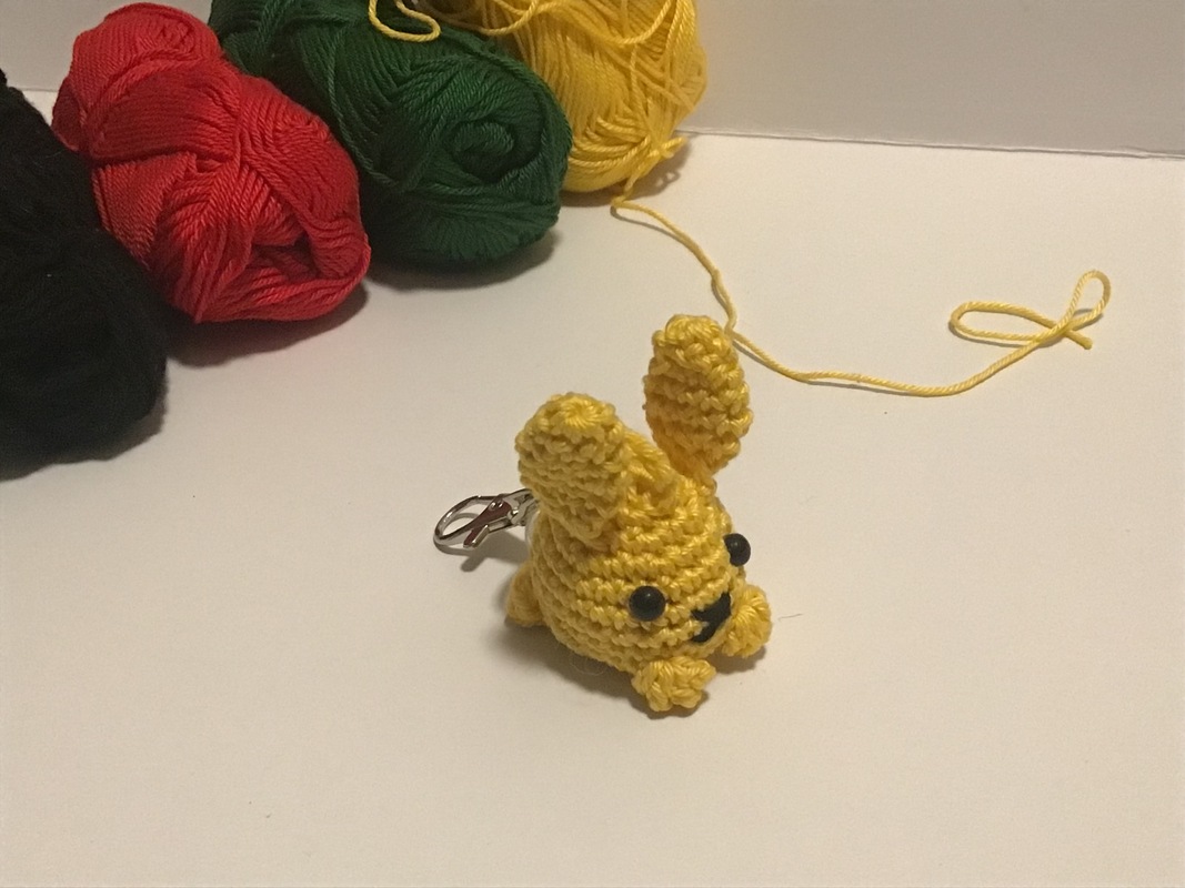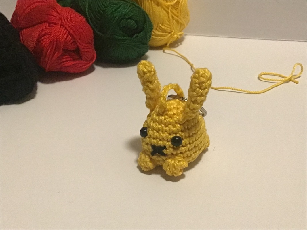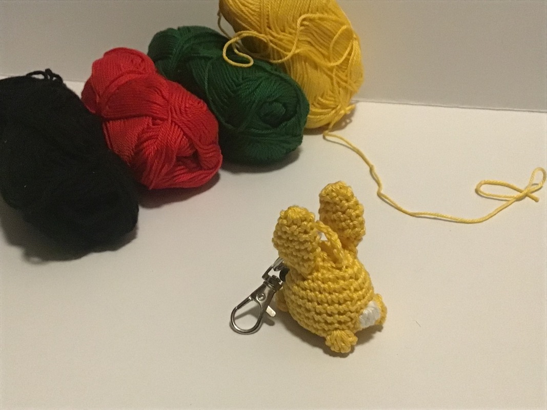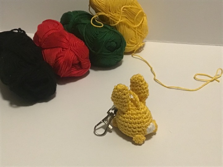 Häkelnadel 2,0, Baumwollgarn 50 gr/ 125 m, Füllwatte, Sicherheitsaugen 6 mm, Vernähnadel, Schere, optional Schlüsselring.