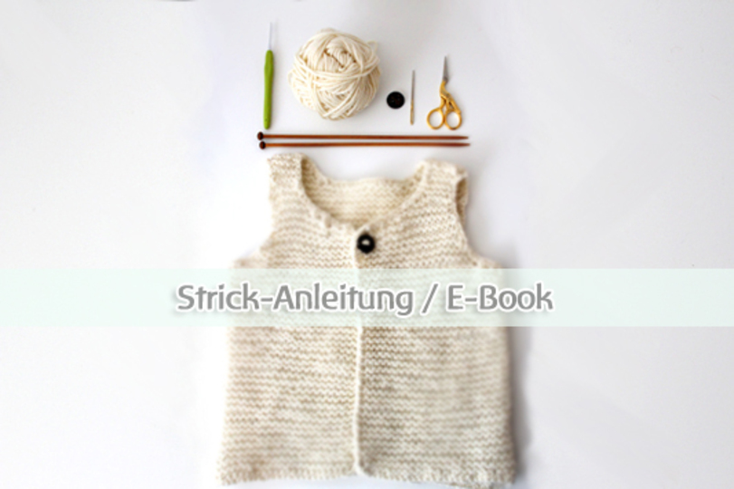 Mit dieser Anleitung kann man die Weste für Kleinkinder in den Größen 92, 110/116 oder 122/128 nachstricken.