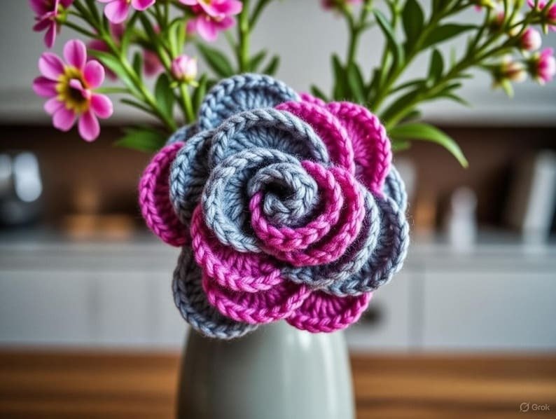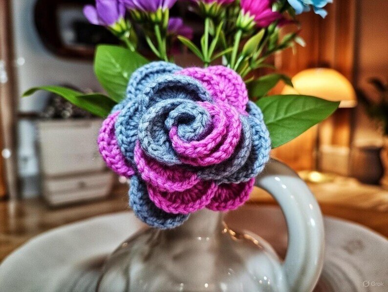 Häkle deine eigene dreidimensionale, mehrschichtige Rose mit dieser digitalen Anleitung von nontycrochet! Perfekt als Applikation für Hüte, Taschen, Dekorationen oder als handgemachtes Geschenk.