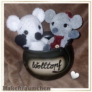 Garn in zwei verschiedenen Farben (eine Körperfarbe und eine Kontrastfarbe). Die genauen Garnbezeichnungen meiner „Fotomodels“ findest du in der Anleitung.