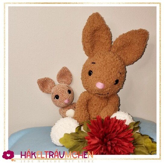 Der Hase wird (abhängig vom Material und der Nadelstärke) unterschiedlich groß: