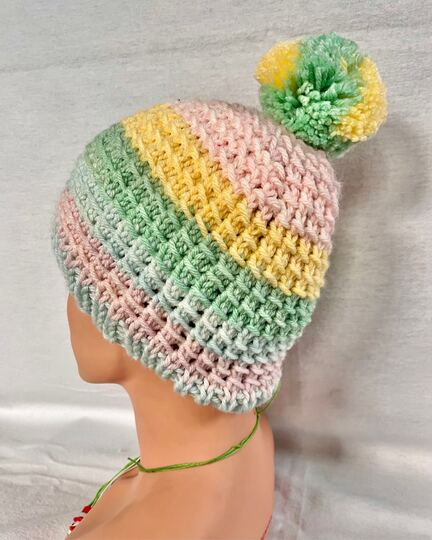 Variiere die Mütze nach Belieben, indem du mit unterschiedlichen Farben oder Mustern experimentierst.