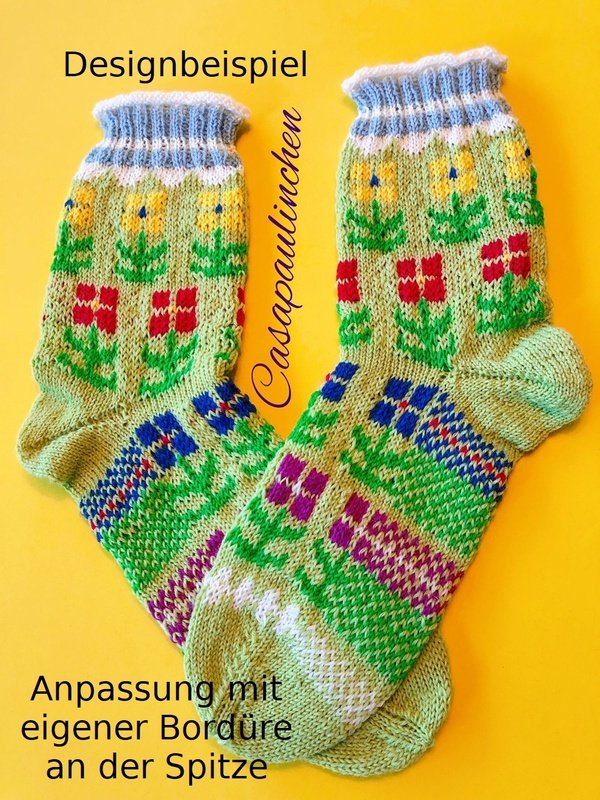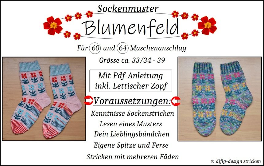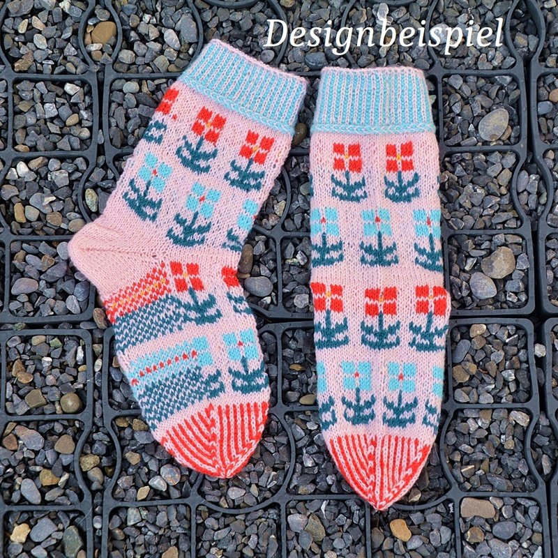 Ein ganzes Blumenfeld an den Füssen? Ja das geht! Mit diesem Sockenmuster zauberst du dir viele Blumen auf deine Füsse und die deiner Kinder, Bekannten und Freunde.