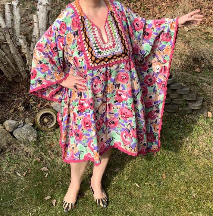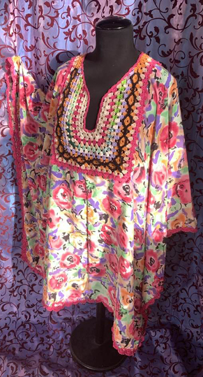 Alle Größen TUNIKA "SOMMERLIEBE" ...Die Tunika hat einen hübschen Häkelkragen um den Hals und eine HäkelBorte rund um den ganzen Stoff....dann noch ein bisschen nähen - mit der Nähmaschine oder mit der Hand- beides ist hier möglich!