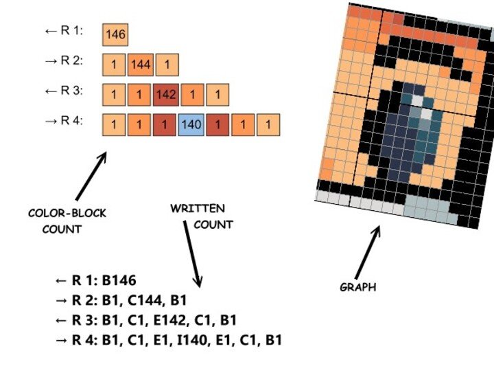 -farbige Zahlen-Blöcke für jede Reihe für feste Maschen (Stb od. hStb)