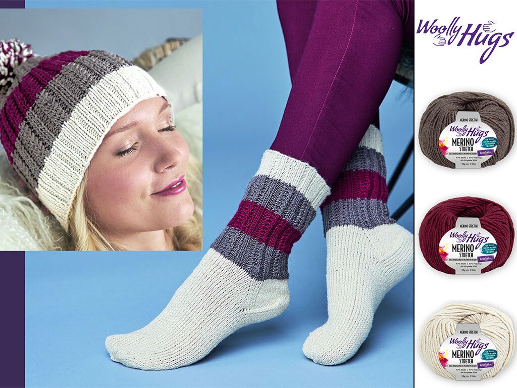 Das wichtigste ist, Kopf und Füße sind warm. Und was gibt es schöneres wenn die beiden Teile so schön zusammen passen? Ein dickeres Garn für die Mütze und ein dünneres Sockengarn für die Füße. Und das in der gleichen Farbe? Wo hat man das schon? Nun, die Woolly Hugs Merino Stretch und die Merino Silk Socks haben genau die gleiche Farbtöne, aber unterschiedliche Garnstärken.