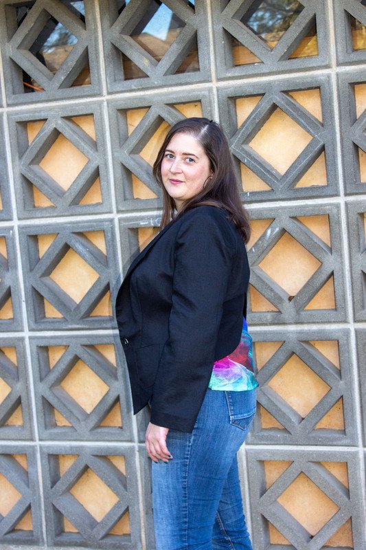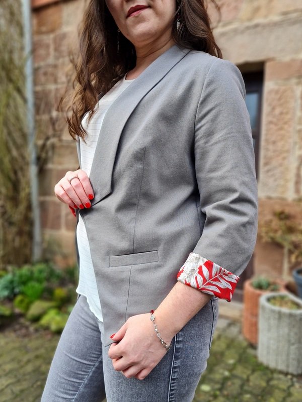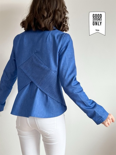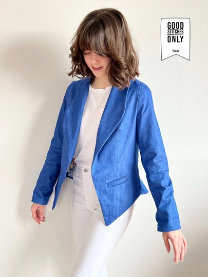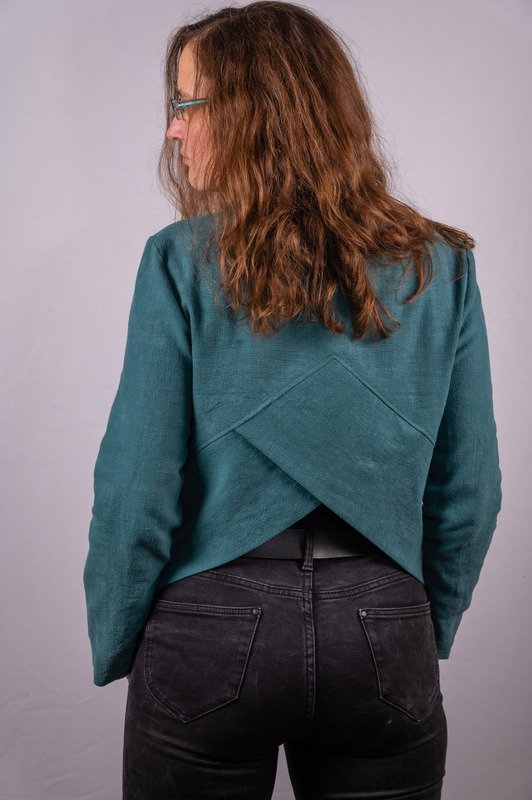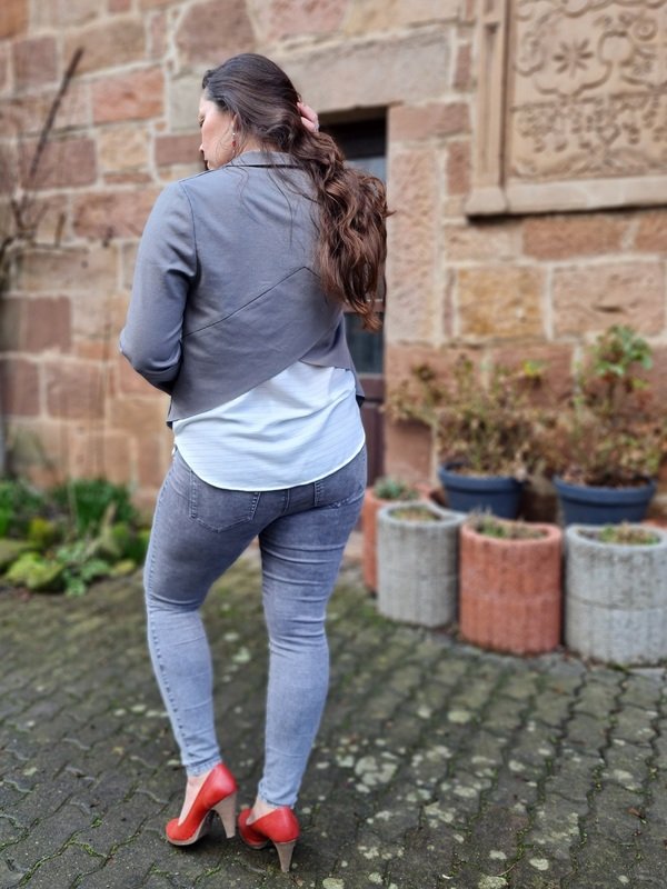 Zusammengefasst: Dieser Schnitt bietet dir einen coolen Kurzblazer mit zwei verschiedenen Kragenformen und 2 Taschenarten und einem optionalen Volant im Rücken.