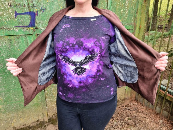 Als Material eignet sich Leinen, Memory, Kunstleder (dünn), Wollstoff (dünn), etc.. Als Beistoffe benötigst du zudem Bündchenware glatt oder gerippt, Jersey, feiner Strick, etc. und optional Viskosewebware, Chiffon, etc. für den Volant und Futterstoff für die Futterjacke.