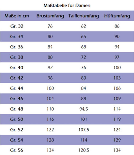 Im Schnittmuster enthalten sind die Damengrößen 32 - 56