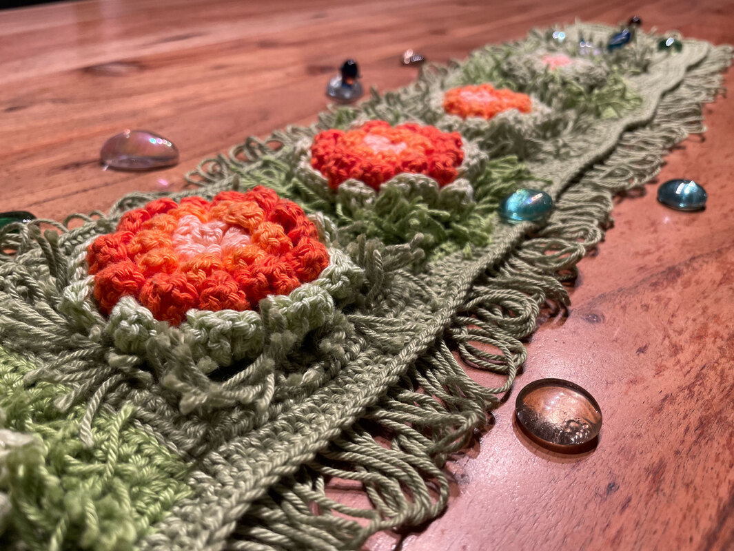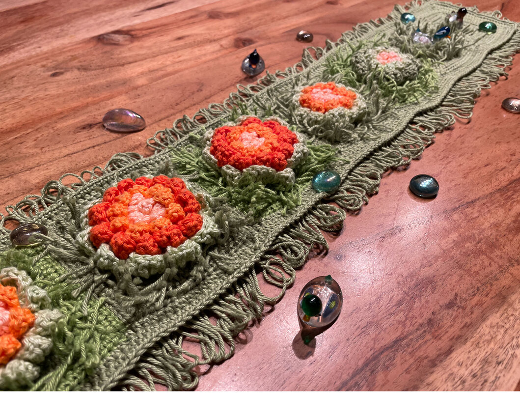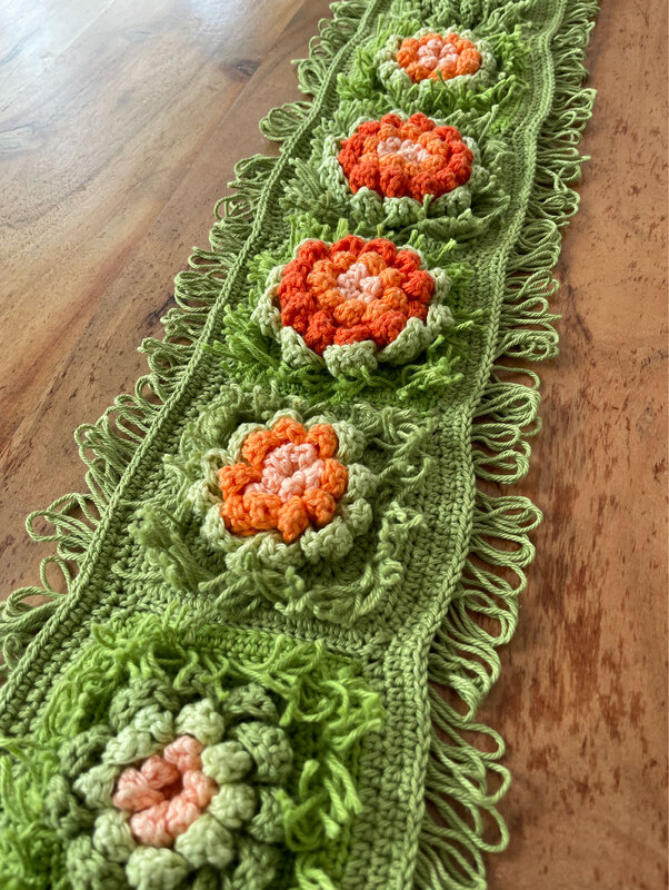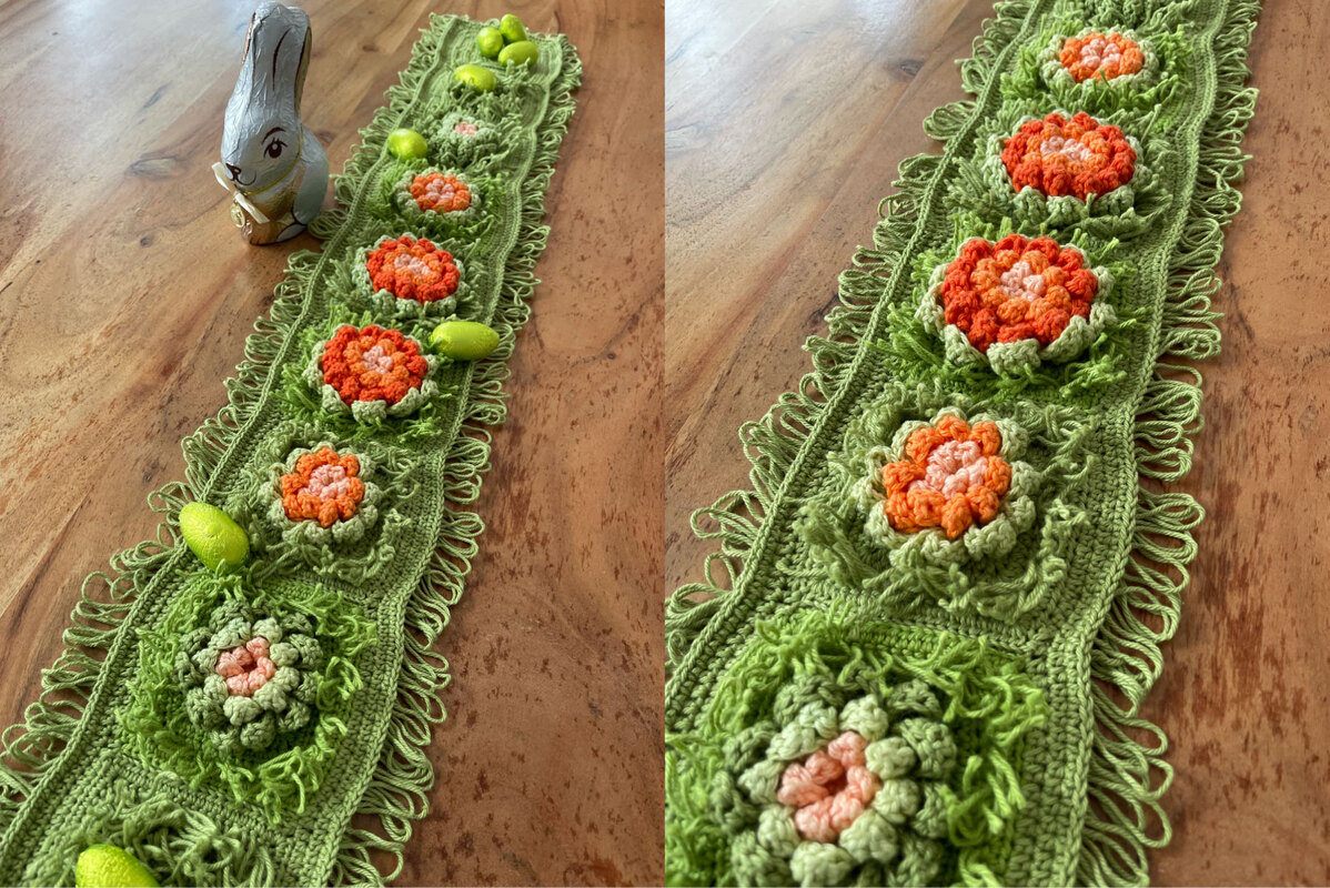 Der Tischläufer hat eine Länge von ca. 102 cm. Er kann aber durch das Anhängen weiterer Grannys beliebig verlängert werden.