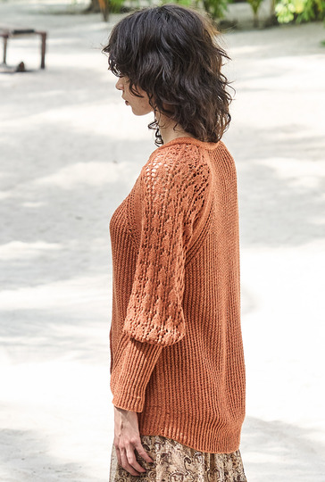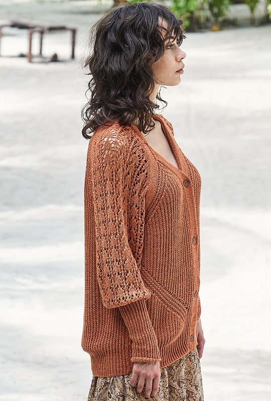 Klassisch anmutende Twinsets stehen ganz ob auf der Must-have-Liste. Kein Wunder, denn nicht nur zusammen, sondern auch solo getragen kommen sie den ganzen Sommer zum Einsatz. Alle Teile des Sets werden in Einzelteilen und von unten nach oben gestrickt. Der Mix aus Halbpatentrippen, die der Schnittführung folgen und zartem Ajour macht es dabei ganz besonders reizvoll – wenn auch nicht ganz einfach zu stricken. Die ausführliche Anleitung und die klare Strickschrift helfen jedoch dabei, jeden einzelnen Schritt genau ausführen zu können. Auch die glatt rechts gestrickte doppelte Blende wird bei den Vorderteilen gleich mitgestrickt. So werden, nachdem alle Teile fertig sind, nur noch alle Nähte - inklusive der Blendennähte – geschlossen und die Knöpfe angenäht. Das Top wird in zwei Teilen gestrickt, wobei hier die Träger auch direkt mitgearbeitet werden – so müssen zum Schluss nur noch die Schulter- und Seitennähte geschlossen werden.