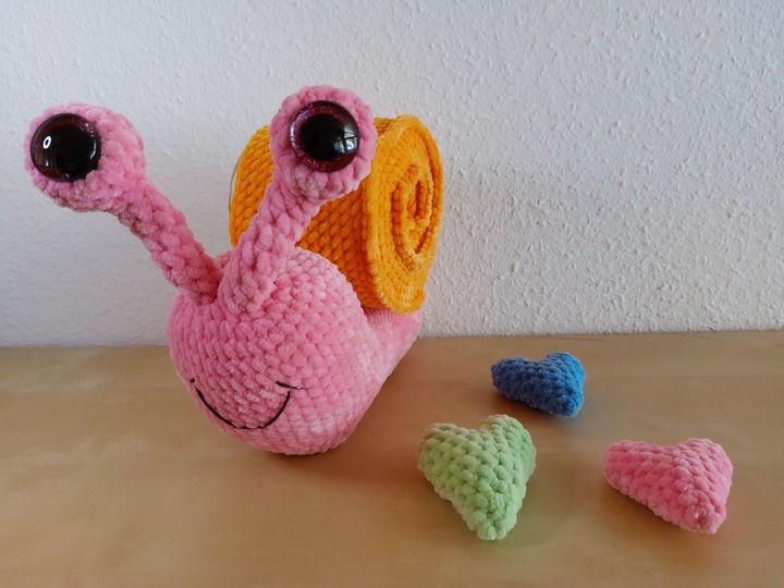 Ich zeige Dir Optional in der Anleitung wie Du diese Schnecke als Klorollenhut verwenden kannst oder selbstverständlich einfach als Kuscheltier oder Deko.