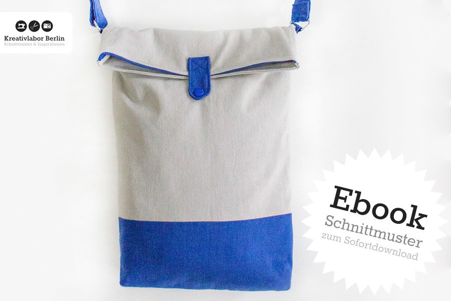 Schnittmuster & ausführliche Nähanleitung mit über 130 Farbfotos zum Selbernähen einer stylischen Umhängetasche mit verstellbarem Schultergurt, farblich abgesetztem Taschenboden und optionaler Innentasche (Reißverschluss). Die fertige Tasche misst ca. 26cm x 34cm.