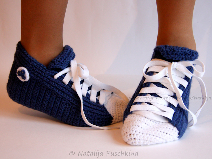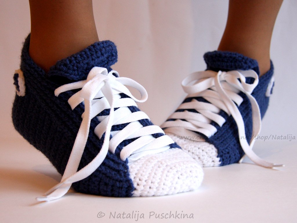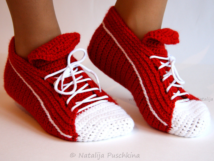 Nach dieser Anleitung ist es möglich Turnschuhe (Hausschuhe) für Frauen und endlich auch für Männer zu häkeln.