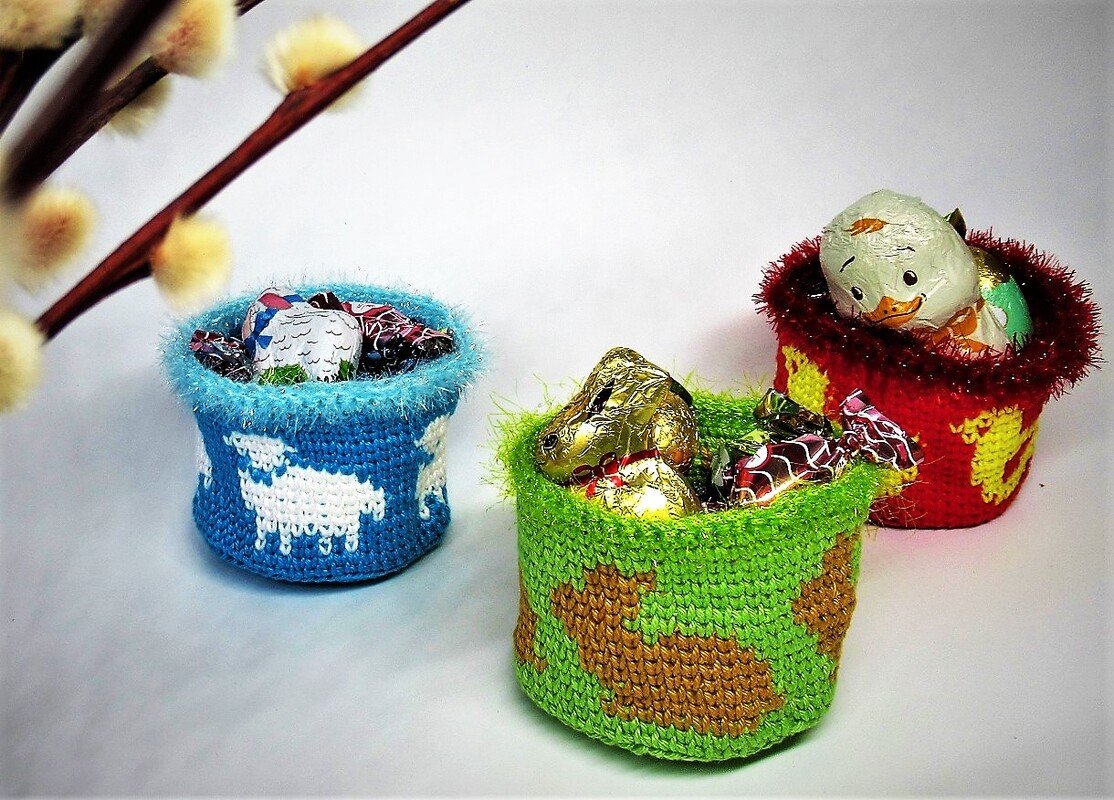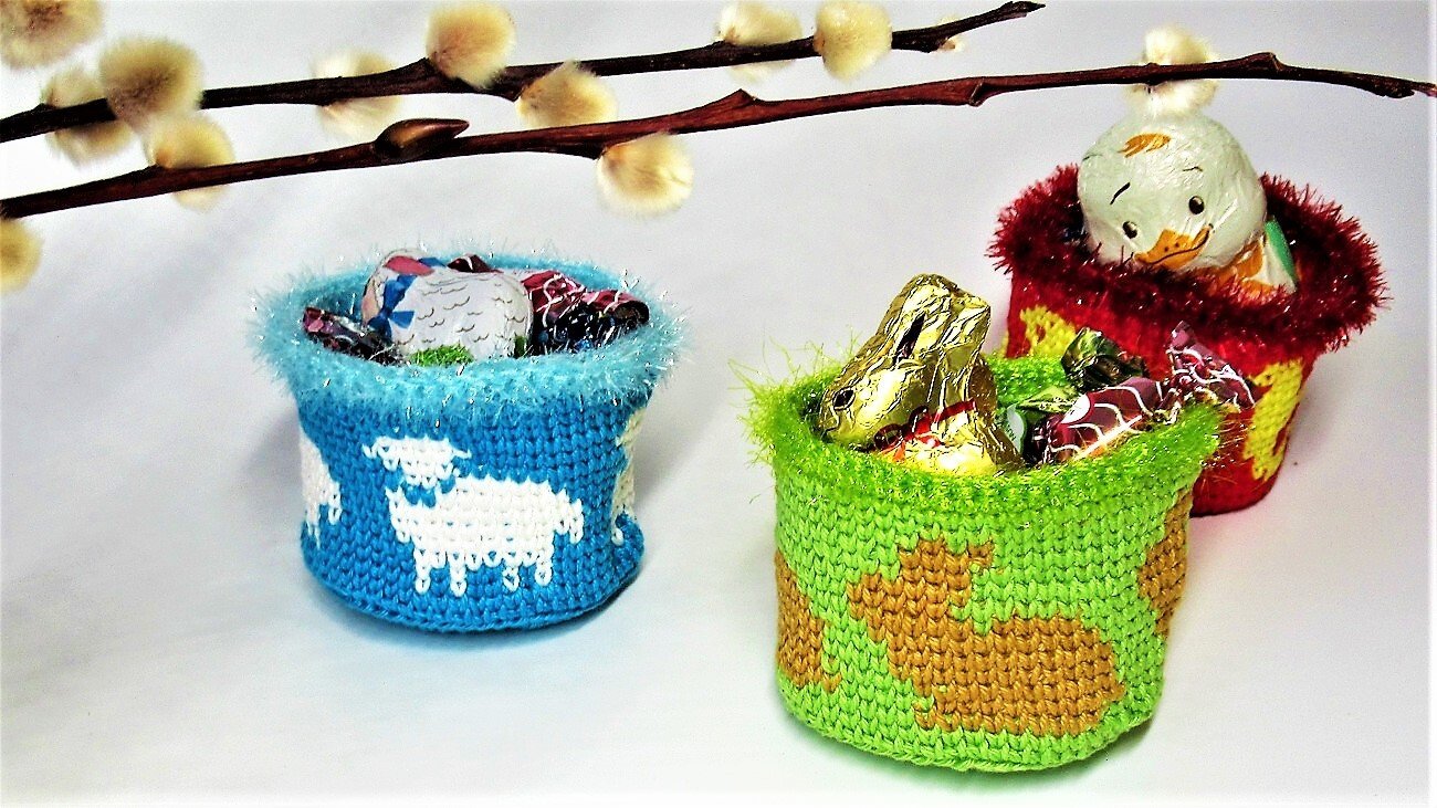 Mit diesen bunten Körbchen mit Ostermotiven kannst du deineOsterüberraschungen dekorativ verschenken. Und das Beste: die Körbchen können jedes Jahr wieder verwendet werden!