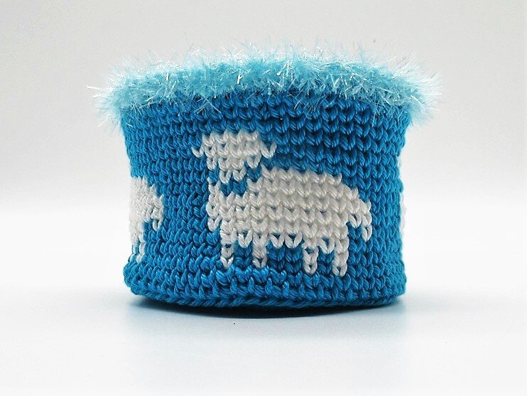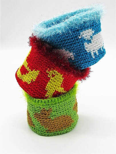 Die Körbchen haben einen Durchmesser von 9 cm und sind 5 cm hoch. Sie können aber auf einfache Weise auch vergrößert gearbeitet werden.