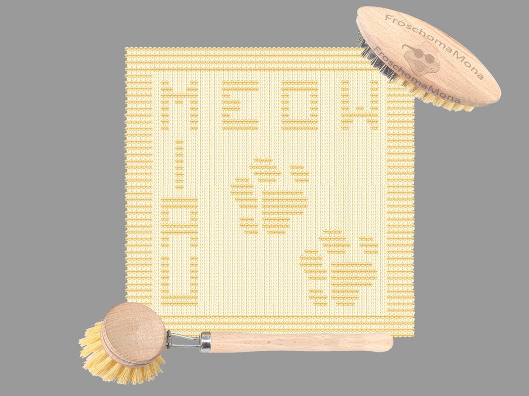 Spültücher und Topflappen mit eingestrickten Motiven sind ein wahrer Hingucker in der Küche und eine preiswerte Deko.