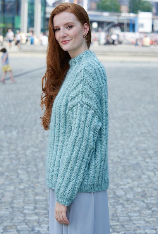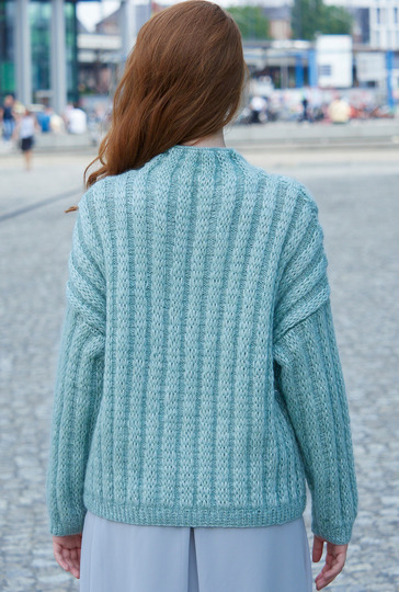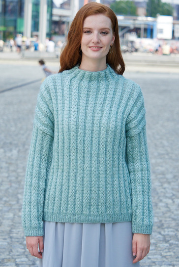 Nicht nur für eine Saison: An den mintfarbenen, leicht flauschigen Pulli aus einfachen Hebemaschen-Rippen können sich auch Strickneulinge wagen. Gestrickt wird in einzelnen Teilen von unten nach oben. Die Hebemaschenmuster sind nicht kompliziert zu stricken und die übersichtliche Strickschrift hilft zusätzlich dabei, stets den Überblick zu behalten. Sind alle vier Teile fertig gestrickt, werden noch alle Nähte geschlossen und aus dem Halsausschnitt die schmale herausgestrickt. Am besten nimmt der fertige Pulli jetzt noch ein kleines Bad und wird im Liegen getrocknet. Dabei schön in Form bringen und glattstreichen – so entfaltet der zarte Flausch seine ganze Schönheit.