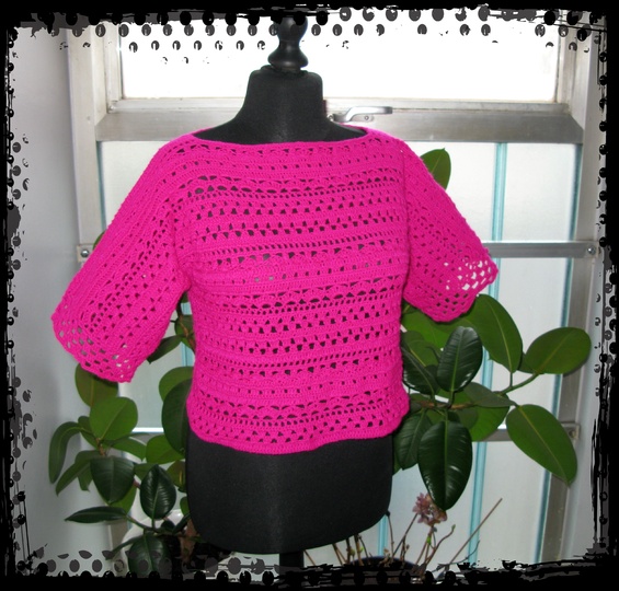 Der Sommerpulli wird in 2 Teilen von unten nach oben gehäkelt.