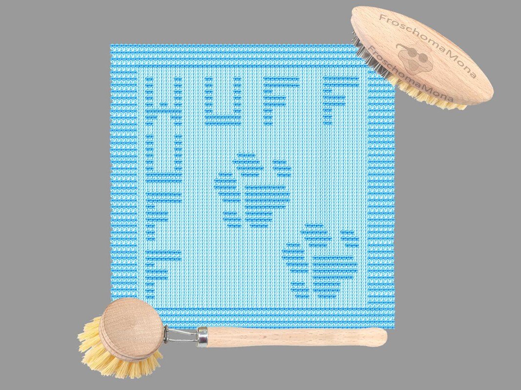 Du kannst auch mehrere meiner Spültuchmotive / Pfotentuchmotive kombinieren und erhältst so dein gestricktes Unikat.
