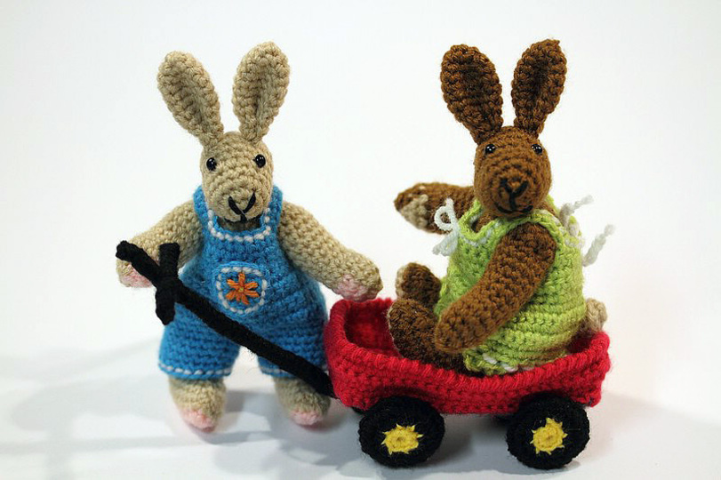 Dieses Set beinhaltet drei Häkelanleitungen. Einmal für den Hasen, einmal für den Bollerwagen in zwei Varianten (oval und viereckig) und einmal für die Kleidung mit Korb und Osterei.
