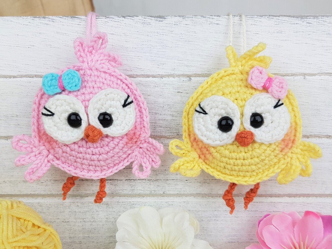 Ich habe gerade den Osterhasen Walda gehäkelt, als meine Nichte uns am Wochenende besuchen kam. Sie ist 8 Jahre alt und wollte unbedingt, dass ich auch etwas für sie häkele ... aber was könnte ich an einem Wochenende mit einem vollen Program häkeln? So dachte ich kurz, am abend habe ich 2 Stunden bei einem Glas Wein gehäkelt und das Küken war geboren. Wir haben es am nächsten Tag gemeinsam dekoriert und die Nichte war sehr glücklich und zufrieden.