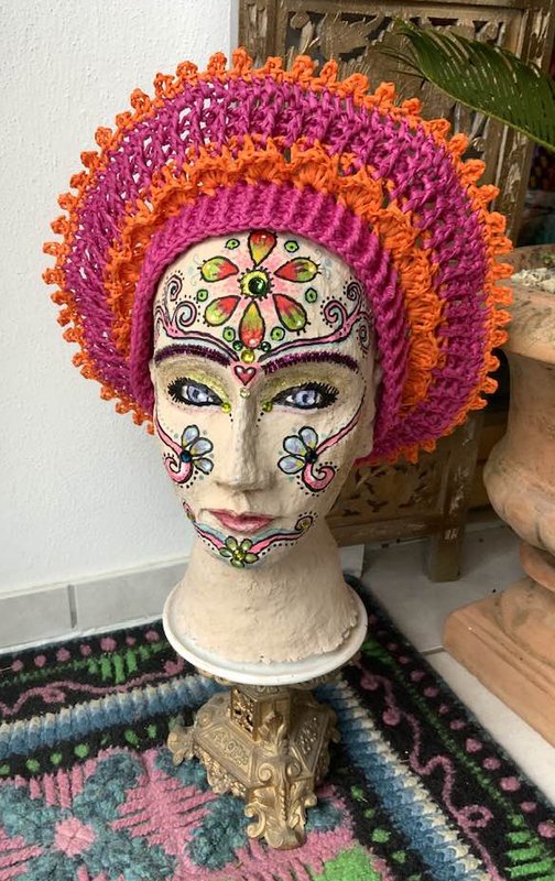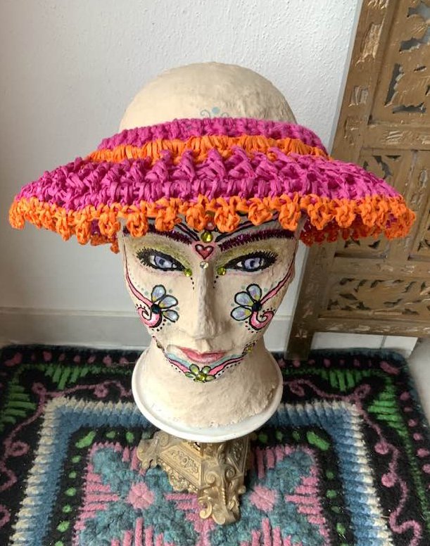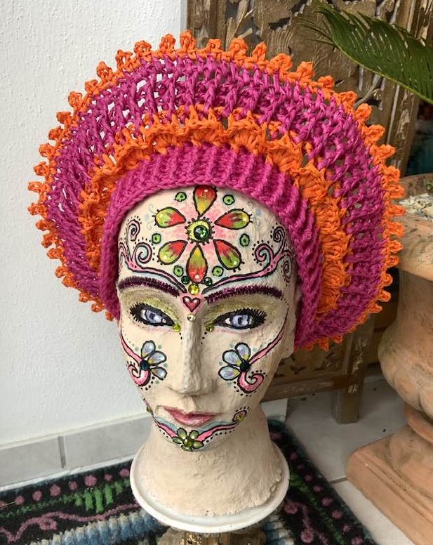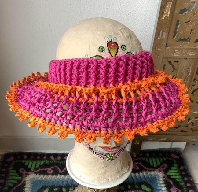 Kleinere Mengen von fertigen Sonnenhut OLKO (bis 5 Stück)...dürfen mit Hinweis auf die Designerin (Petra Perle) auf Weihnachtsmärkten und Handarbeitsmärkten gerne verkauft werden!!! Bitte NICHT zu billig sein!