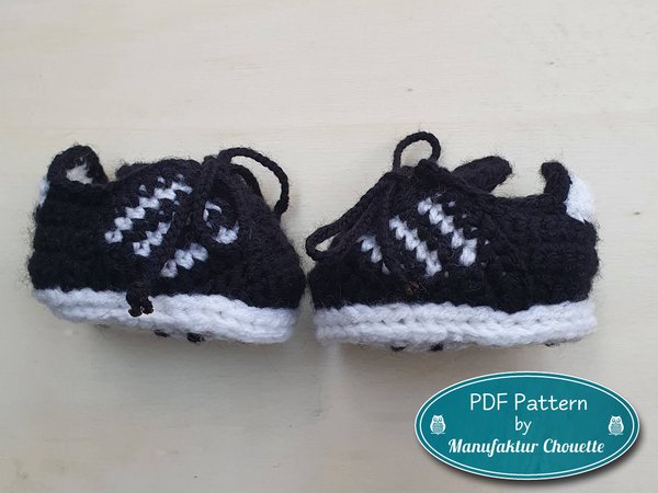 Je nach verwendeter Garnstärke werden die Schuhe unterschiedlich groß. In der Anleitung sind Maße für 2 unterschiedliche Größen und Garnstärken angegeben - Du entscheidest, wie groß/klein die Fußballschuhe werden sollen - Sohlenlänge zwischen 7,5 und 10 cm.