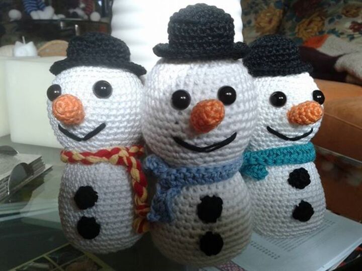gehäkelt mit einer Häkelnadel 2,5 mm und Baumwollgarn wird der Schneemann ca. 11 cm (ohne Hut)
