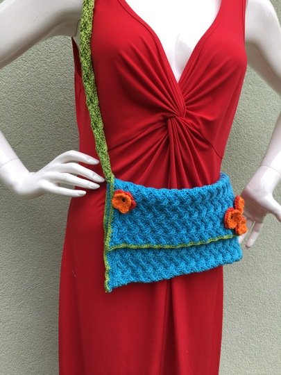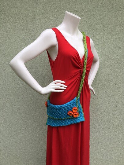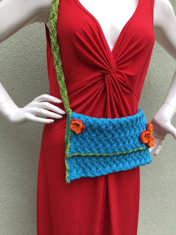 Es ist eine sehr praktische, schnell gestrickte Handtasche mit bezaubernden Blumen, die