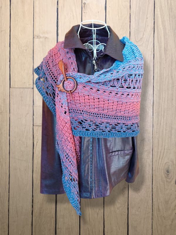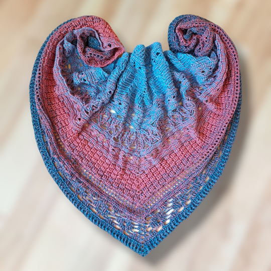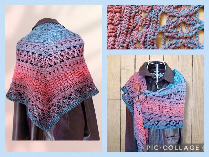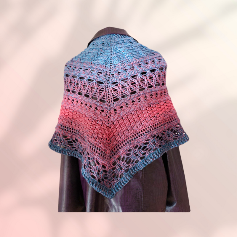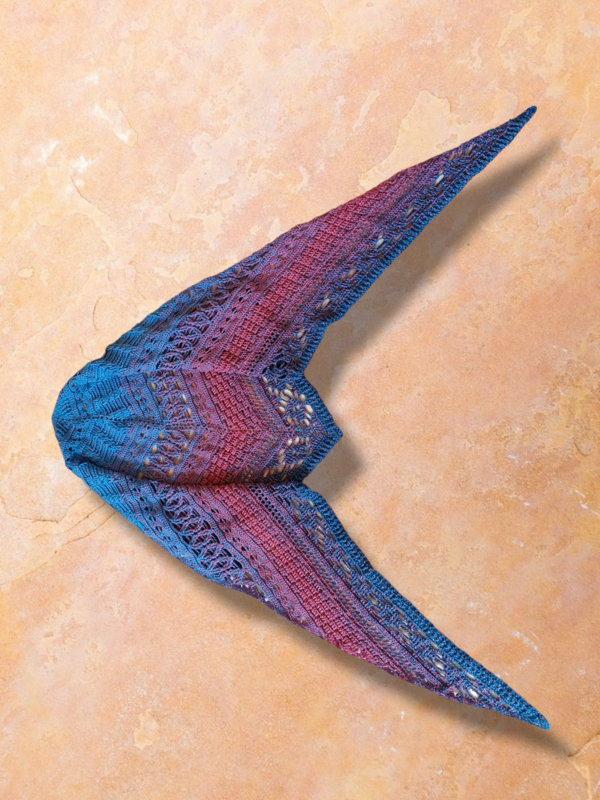 Chaloma BE ist ein flaches Dreiecktuch, das aus vielen verschiedenen Mustern besteht. In fast allen Mustersätzen sind viele Reliefstäbchen zu finden, für Liebhaber von diesen Maschen genau das richtige.
