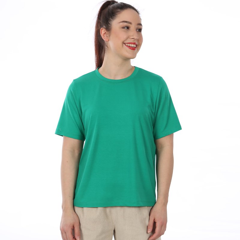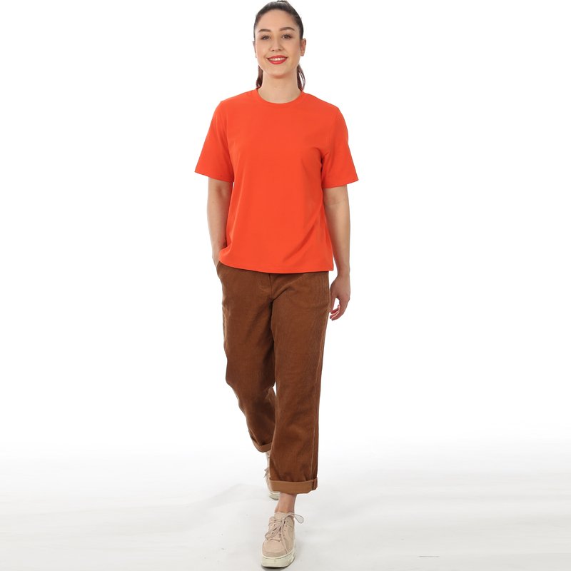FRAU AMY passt, wenn es unkompliziert und lässig sein darf. Ein klassisches, kurzärmliges T-Shirt nach amerikanischem Vorbild. Es ist gerade und großzügig geschnitten, der halsnahe Rundhalsausschnitt wird mit einem Bündchen verarbeitet. FRAU AMY ist casual und sportlich zugleich und kann mit (fast) allem kombiniert werden.