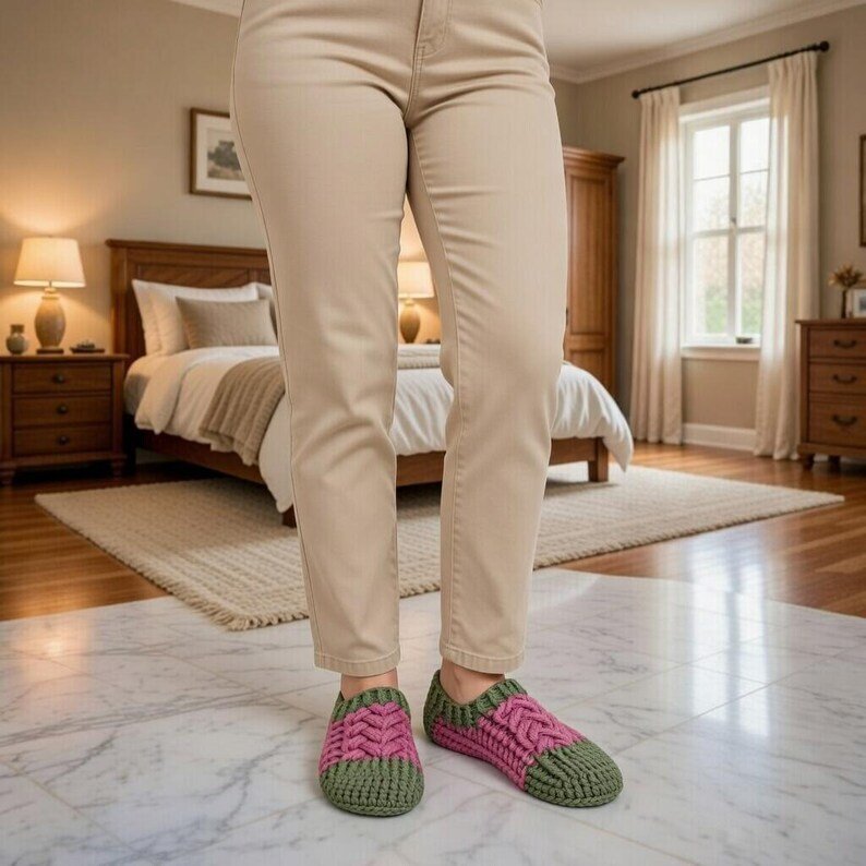 Mit dieser PDF Häkelanleitung + Videotutorial (Video nur auf Englisch) von nontycrochet kannst du wunderschöne und bequeme Damen-Hausschuhe selbst häkeln.