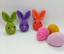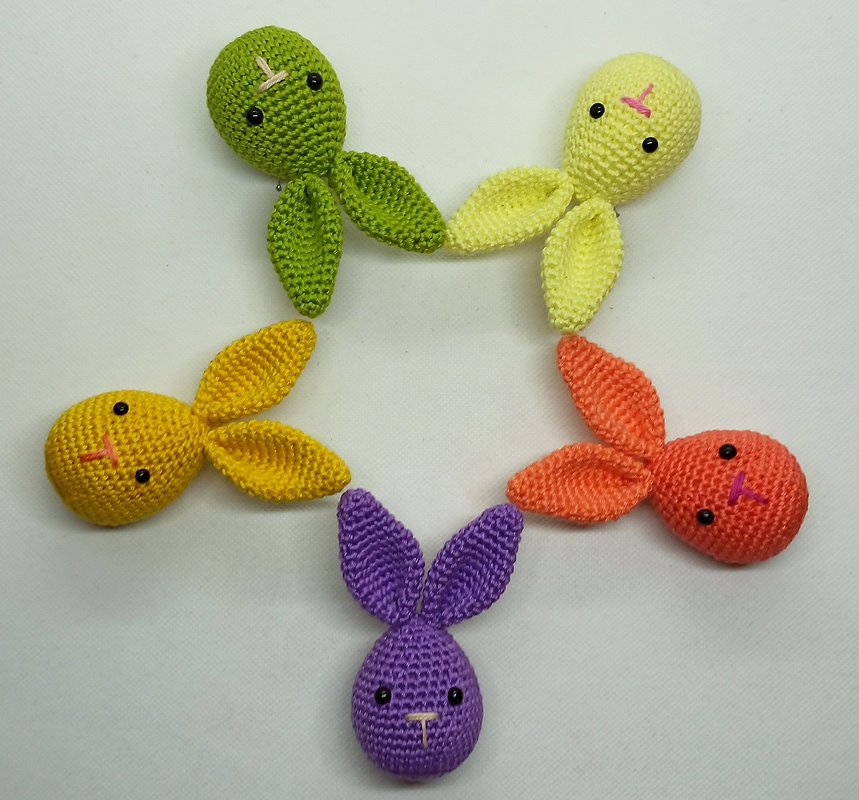 Es handelt sich um eine Häkelanleitung für einfache gehäkelt Osterhase oder Osterei. Die Häschen oder Eier kannst du mit einer Farbe oder mit Wolle mit Farbverlauf häkeln, aber auch mit dickere oder dünnere Wolle.