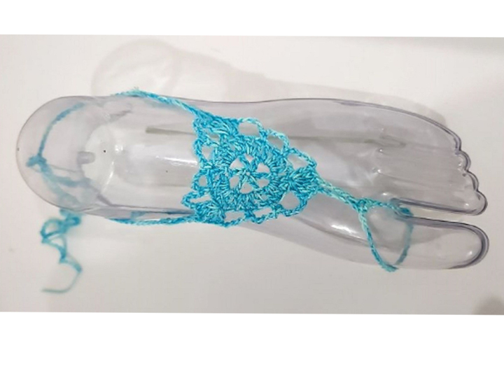 Es wird erklärt: 3 Seiten, Fußkettchen-Sandale, Beschreibung, Abbildungen.