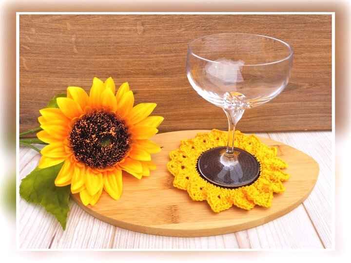 Dieser schöne Untersetzer bringt den Sommer ins Haus. Ein sehr hübsches Lochmuster, mit dem sicher auch Anfänger schon ihre Freude haben werden. Dadurch, dass der Innenteil nur mit festen Maschen gehäkelt ist, steht dein Glas/Tasse auf einem festen Untergrund und wackelt nicht.