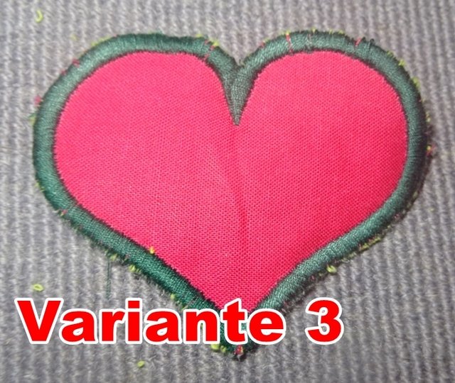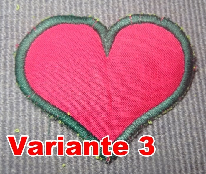 Variante 3: die Variante mit einem 5mm Satinstich als Rand bei dem die Stoffe vor dem letzten Stickschritt zurückgeschnitten werden, mit sauberer Stoffkante am Rand, allerdings muss das Stickflies sehr stark sein da es sonst leicht ausreist.