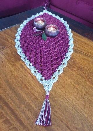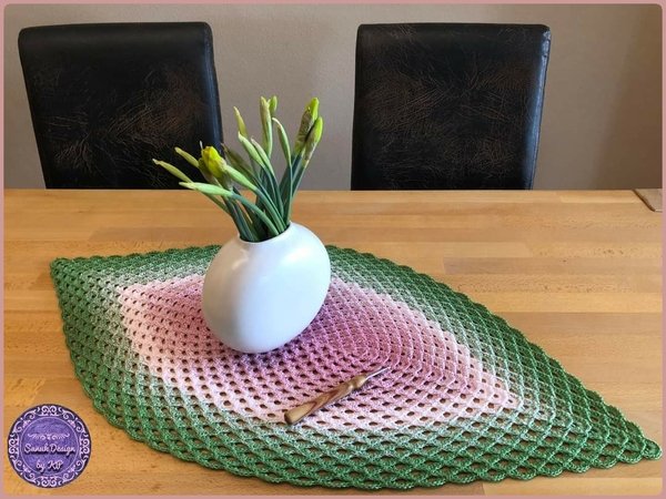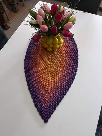 Mit dieser Häkelanleitung für einen Tischläufer kannst Du Dir einen echten Hingucker zaubern. Die ovale Form läuft an den beiden Enden spitz zu. Mit Quasten wird diese Form noch mehr betont (optional). Ich persönlich finde einen Farbverlauf ideal. In uni sieht er eher edel aus. Die Bildergalerie inspiriert Dich bestimmt, um zu Deinem Unikat zu kommen.