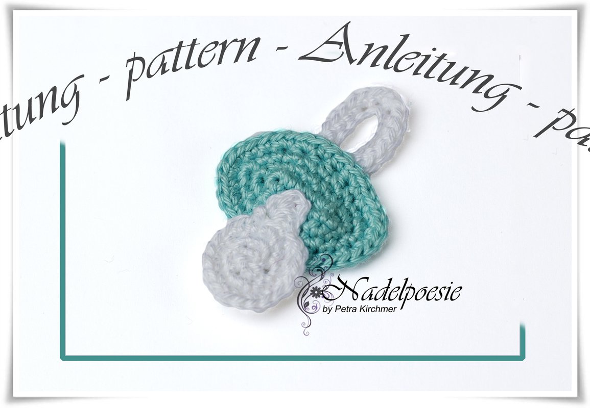 Leicht nachzuarbeitende Häkelanleitung für eine Schnuller-Applikation.
