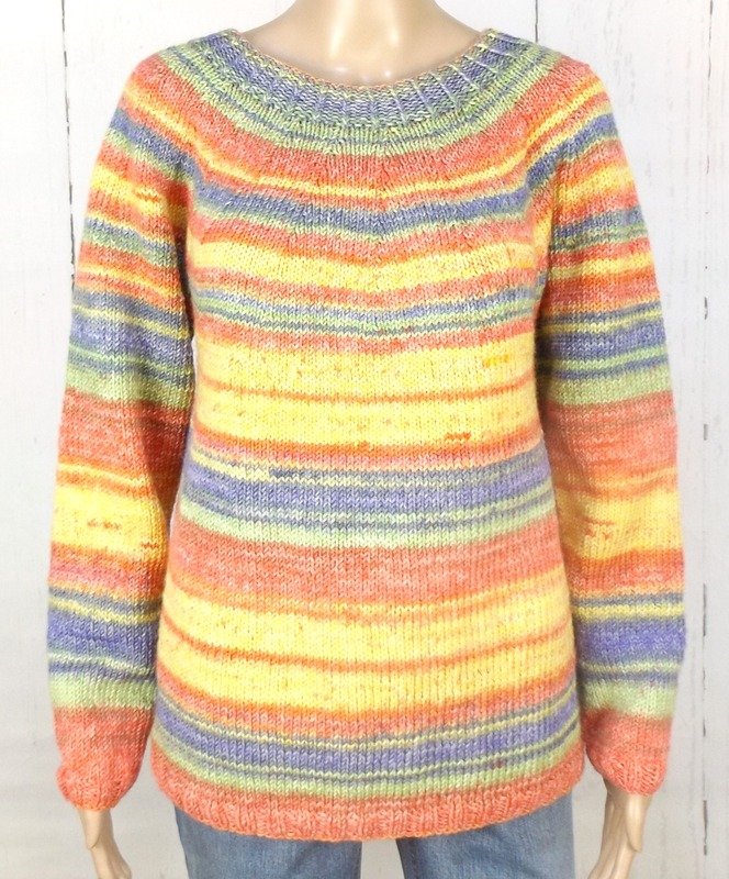 Dieser sportliche Klassiker ist aus feinster Merinowolle von unten nach oben gestrickt. Die Streifen wirken durch die Rundpasse besonders attraktiv und ergeben sich von ganz alleine. Er ist das ganze Jahr ein angenehmer Begleiter und passt einfach überall dazu! Der Schick liegt hier in der schlichten Einfachheit. Dieser Pulli schafft es sicher zum absoluten Lieblingsstück!