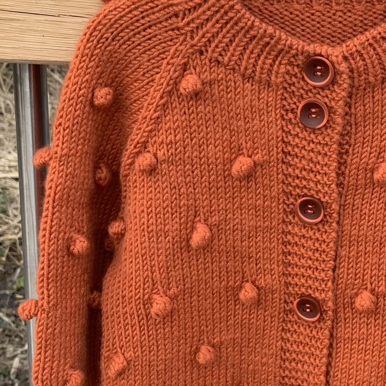 Hier handelt es sich um eine süße gestrickte Kinderjacke mit kleinen Noppen die gehäkelt werden.