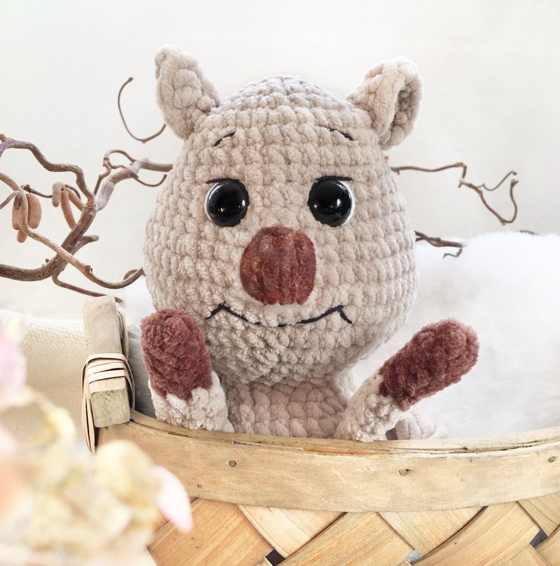 Quinny wird an einem Stück gehäkelt, einzelne Körperteile werden dabei mit eingehäkelt, sodass nichts angenäht werden muss.