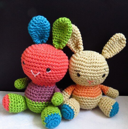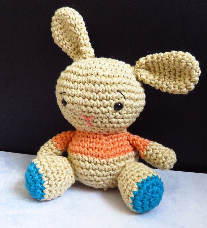 Häkelanleitung für einen Amigurumi Hasen. Nicht nur für Ostern eine tolle Häkelidee. Durch die farbliche Absetzung entsteht ein „T-Shirt“, das lässt den Hasen gleich modischer daher kommen…..:) Wer Reste hat, kann den Hasen ganz bunt werden lassen, oder man nimmt nur zwei Farben.