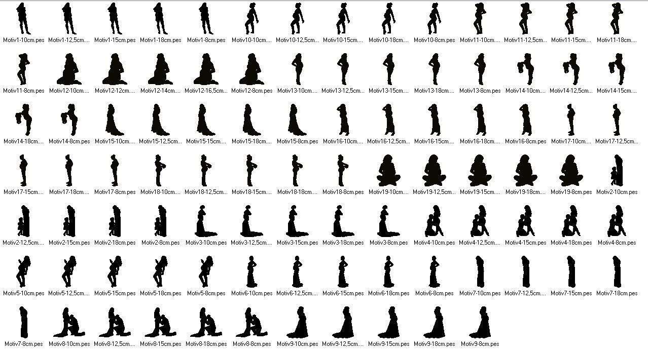 Ihr bekommt 19 Motive in je 5 Größen von 8 bis 18cm