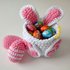 Dieses niedliche Osterkörbchen ist eine wunderschöne Tischdekoration. Es kann mit gehäkelten oder sogar Schokoladeneiern gefüllt werden.