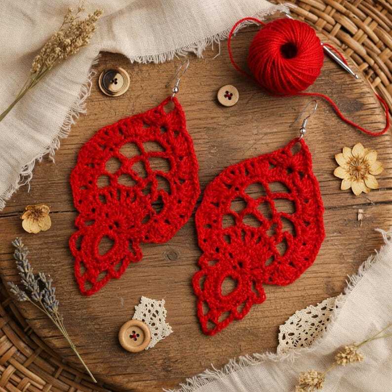 Erstelle wunderschöne Boho-Häkelblatt-Ohrringe mit dieser Schritt-für-Schritt-Anleitung! Dieses PDF enthält schriftliche Anweisungen, Fotos für jeden Schritt, Maschenzahlen und Maschenproben-Informationen, die dich durch den gesamten Prozess führen. Perfekt für Anfänger oder alle, die handgemachten Schmuck lieben.
