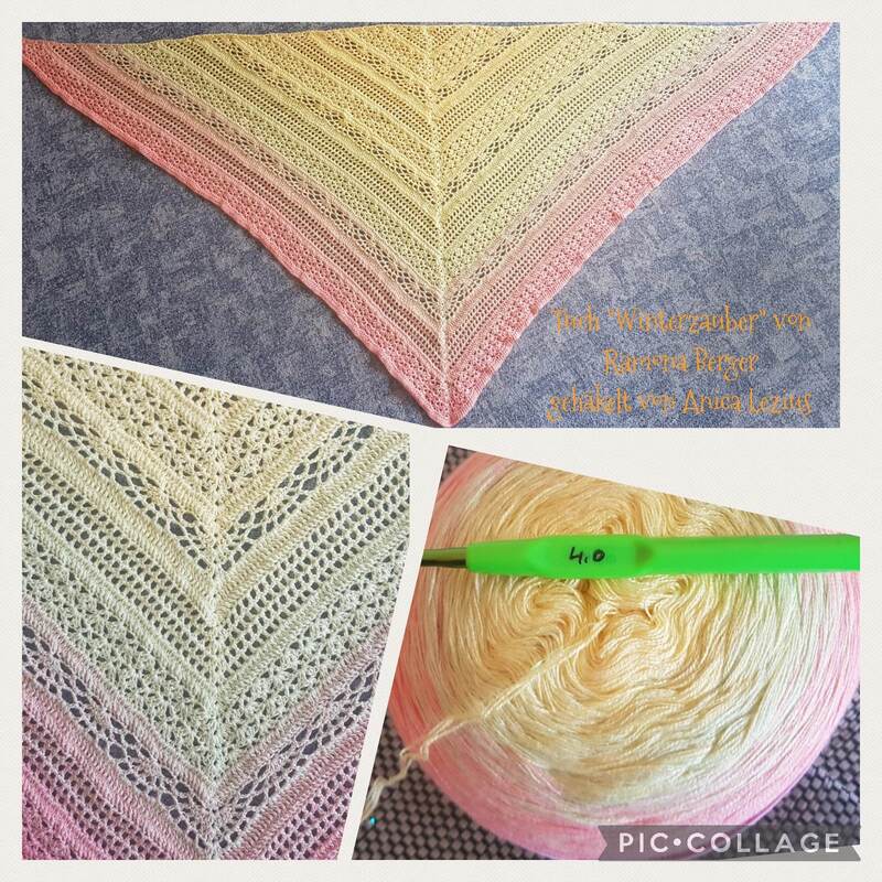 Das Tuch erreichte bei mir ungespannt / ungebügelt eine Größe von 184cm x 85cm.